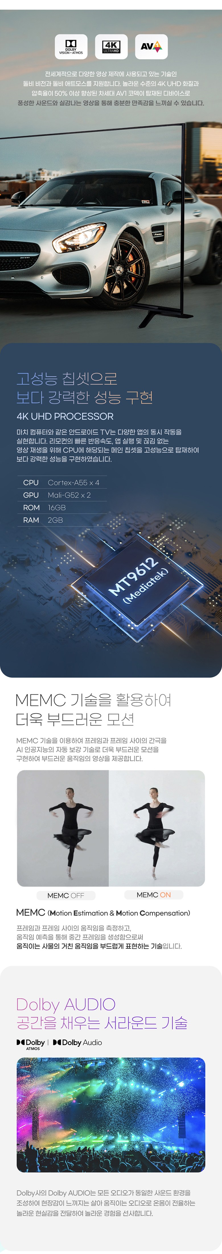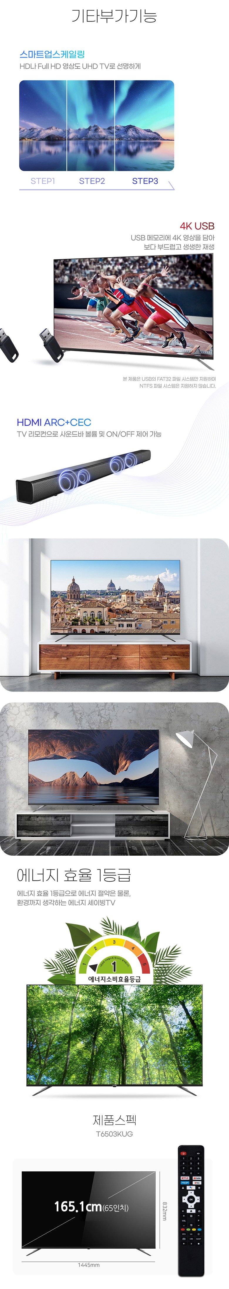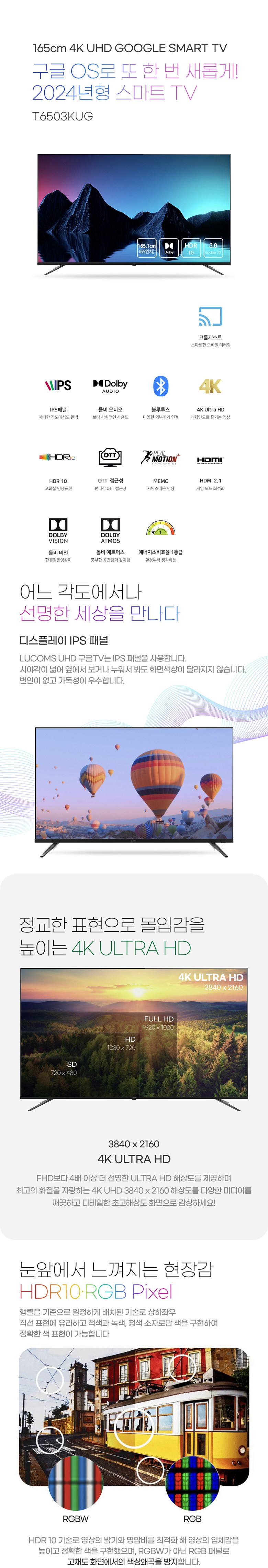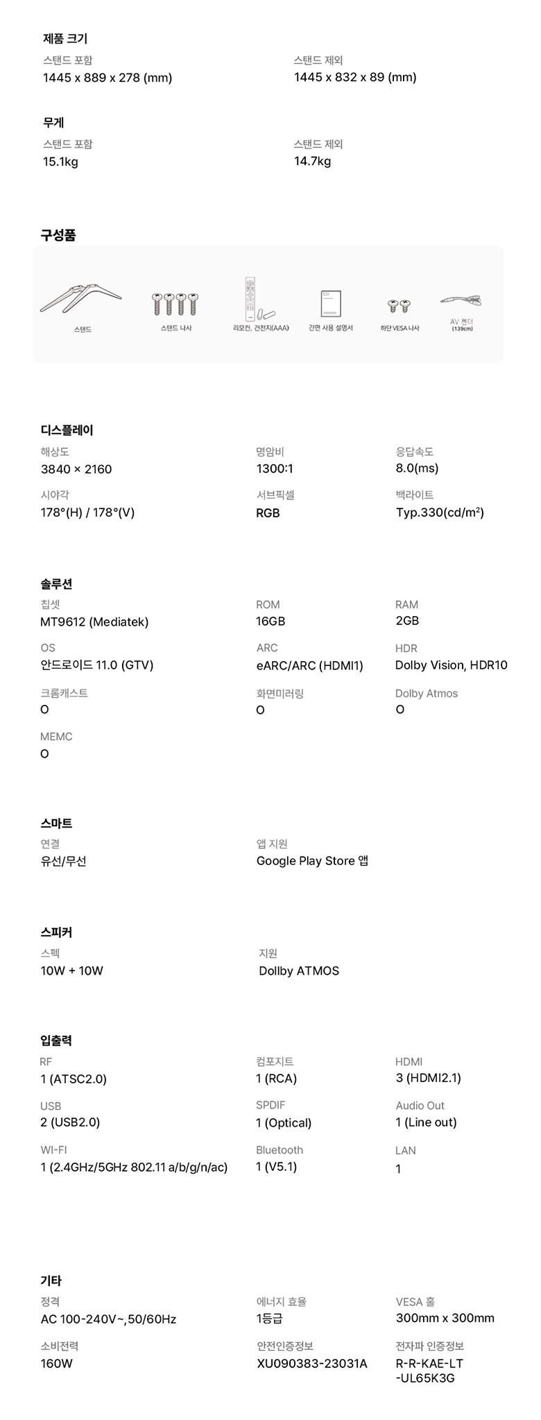 제품명 : 4K UHD IPS패널 구글OS 스마트 자연스로운 MEMC 65인치 TV